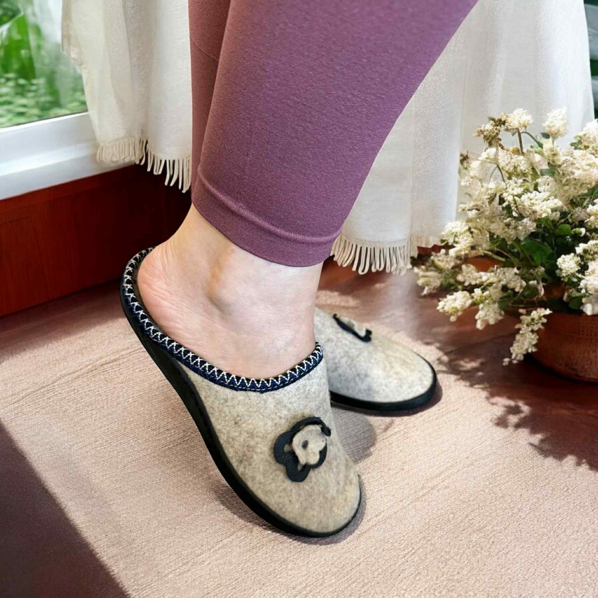 Cholewka: naturalny filc wełniany z ozdobnym kwiatkiem