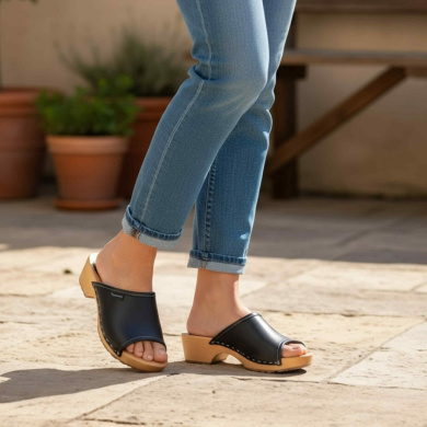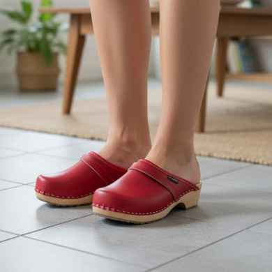 Drewniaki damskie NATURFEET– skórzane klapki na drewnianej podeszwie – Piękno i Elegancja DKO5WH