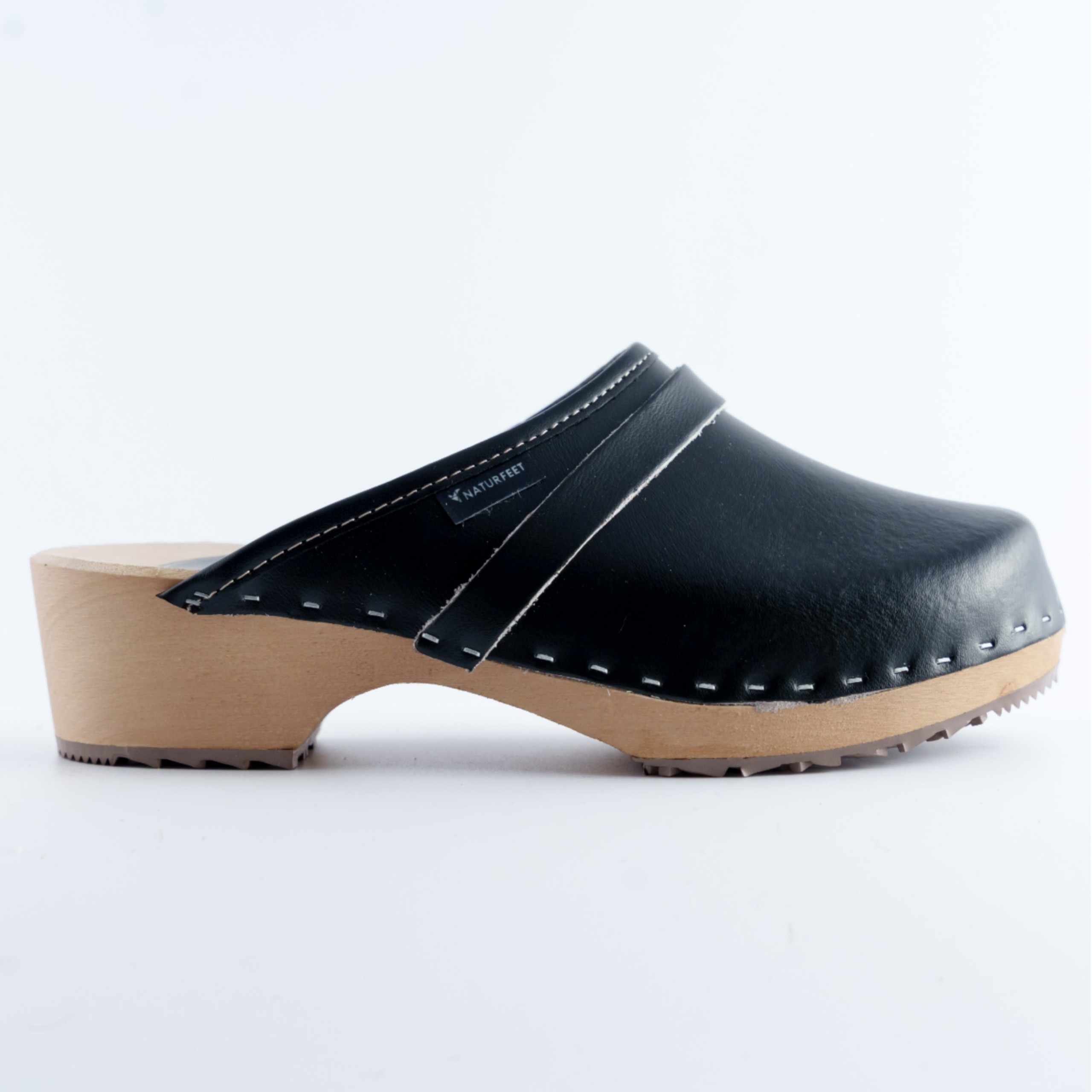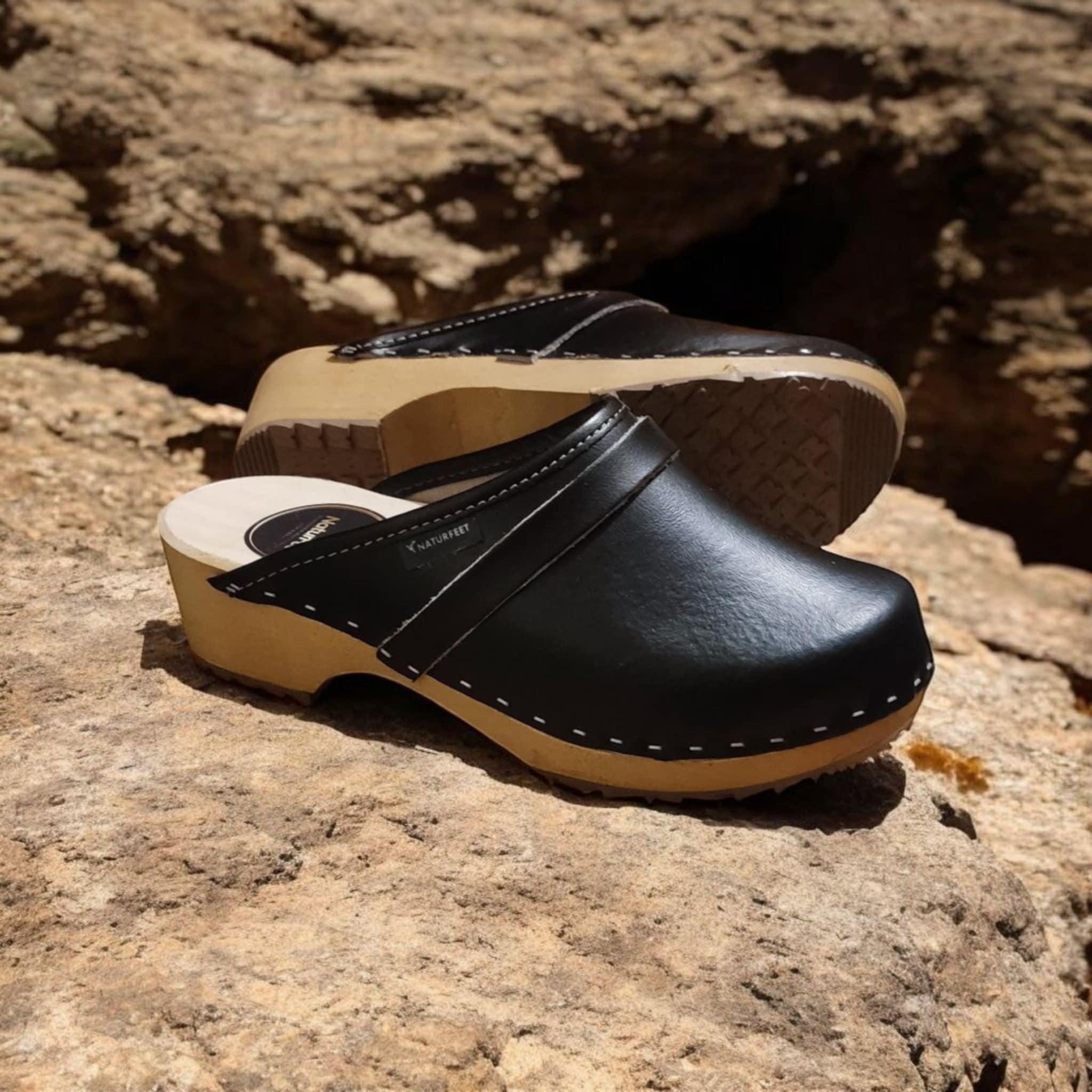 Stylowe i wygodne chodaki marki Naturfeet to połączenie klasycznego designu i najwyższej jakości materiałów. Wykonane z naturalnej skóry w eleganckim czarnym kolorze, idealnie sprawdzą się zarówno do pracy, jak i na co dzień. Stabilny, drewniany obcas o wysokości 4,5 cm zapewnia komfort przez cały dzień, a antypoślizgowa podeszwa zwiększa bezpieczeństwo użytkowania. Naturalne materiały gwarantują odpowiednią wentylację i trwałość obuwia.
