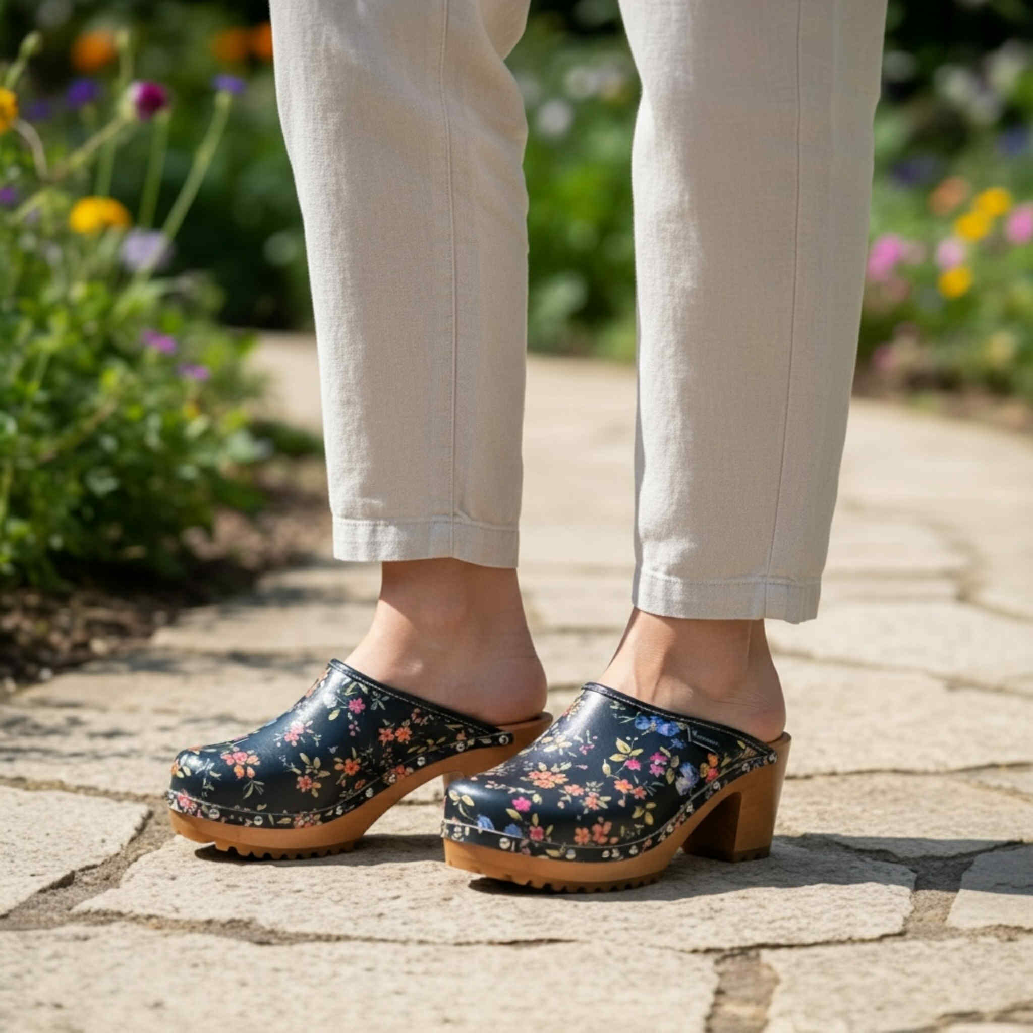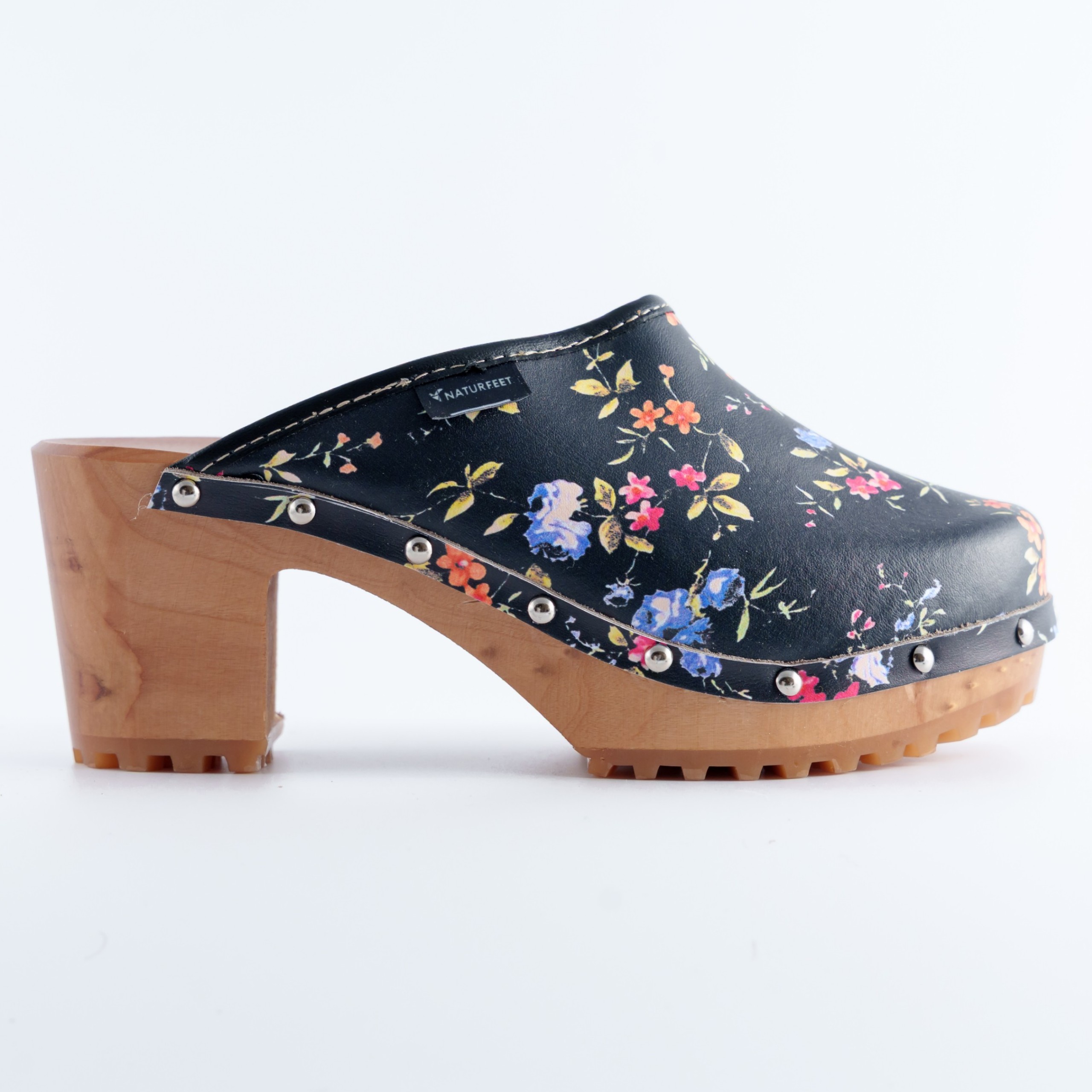 Odkryj urok klasycznych, a zarazem wyjątkowo stylowych drewniaków marki Naturefeet, stworzonych z myślą o kobietach ceniących naturalne materiały, komfort i niepowtarzalny wygląd. Te eleganckie klapki zostały wykonane z wysokogatunkowej skóry naturalnej, zdobionej subtelnym, kolorowym wzorem kwiatowym, który doskonale podkreśli letnie stylizacje.