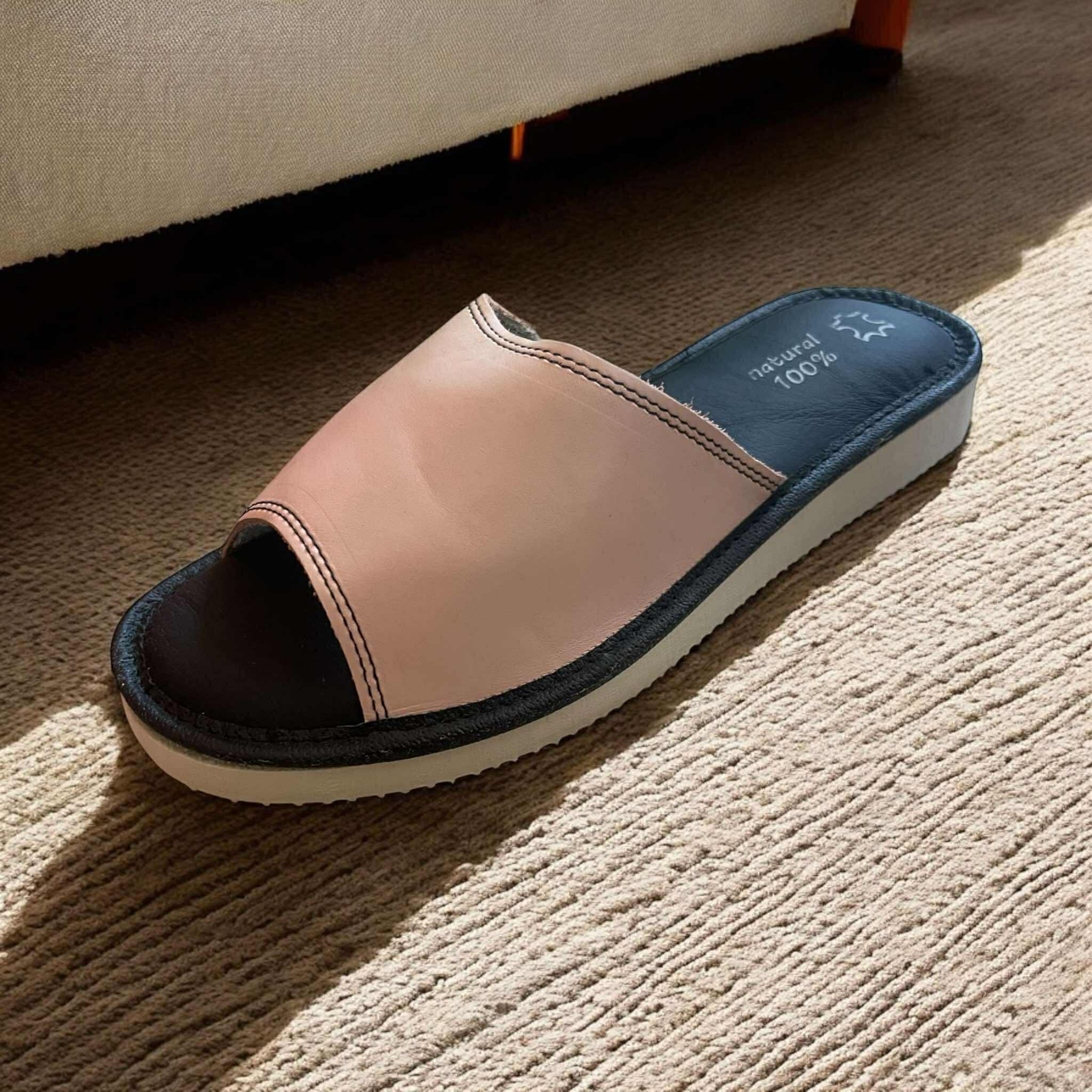 Skórzana wkładka i wnętrze zapewniają miękkość, przewiewność oraz komfort przez cały dzień, a lekka podeszwa z pianki EVA Premium doskonale amortyzuje kroki i jest odporna na ścieranie. Idealne zarówno do domu, jak i na letnie wyjścia.
