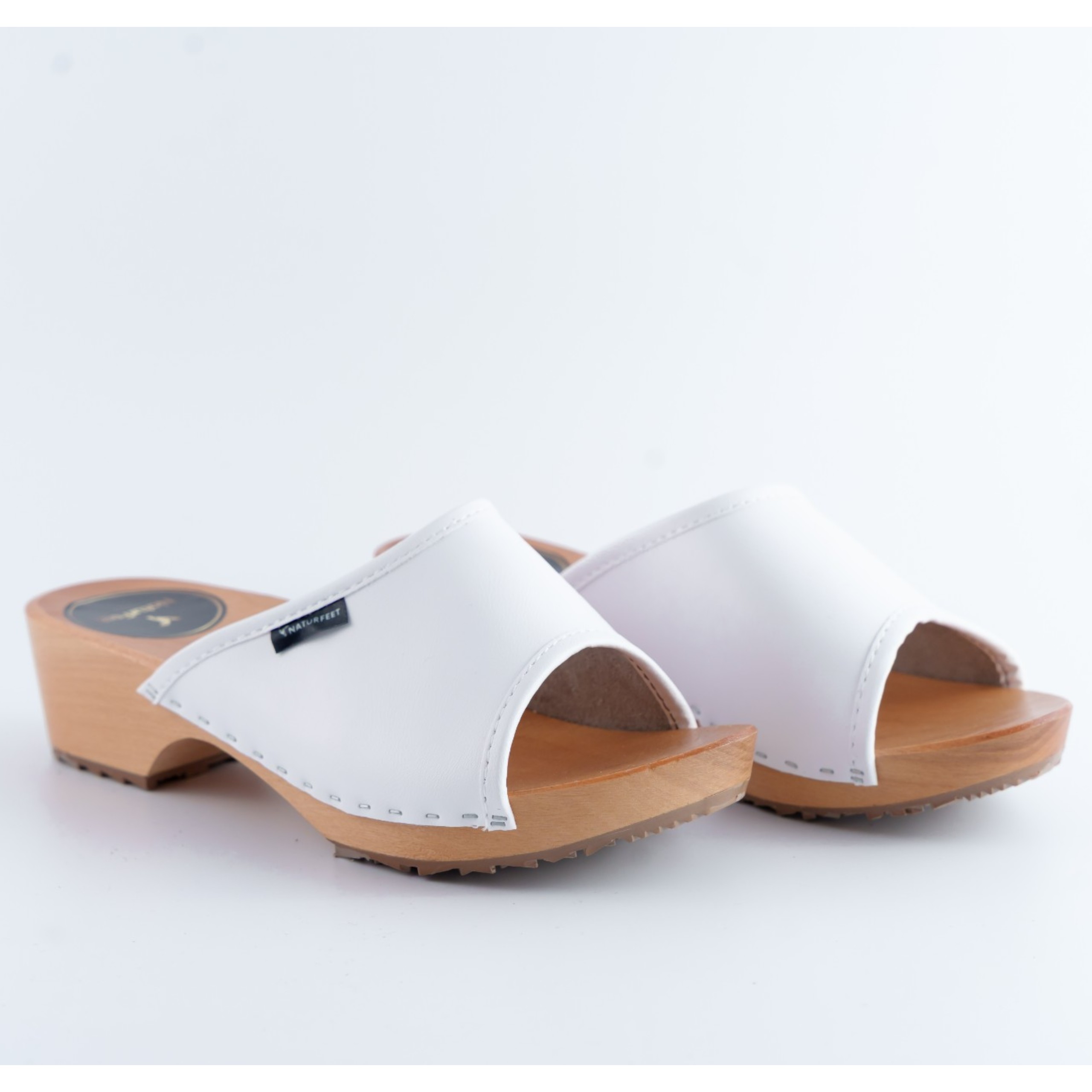 Wkładka z naturalnego drewna topolowego wsparta pianką pod podbiciem oraz podeszwa z poliuretanu (PU) z systemem tłumienia drgań czynią z tych chodaków niezawodne wsparcie dla stóp, stawów i kręgosłupa podczas wielogodzinnego użytkowania.