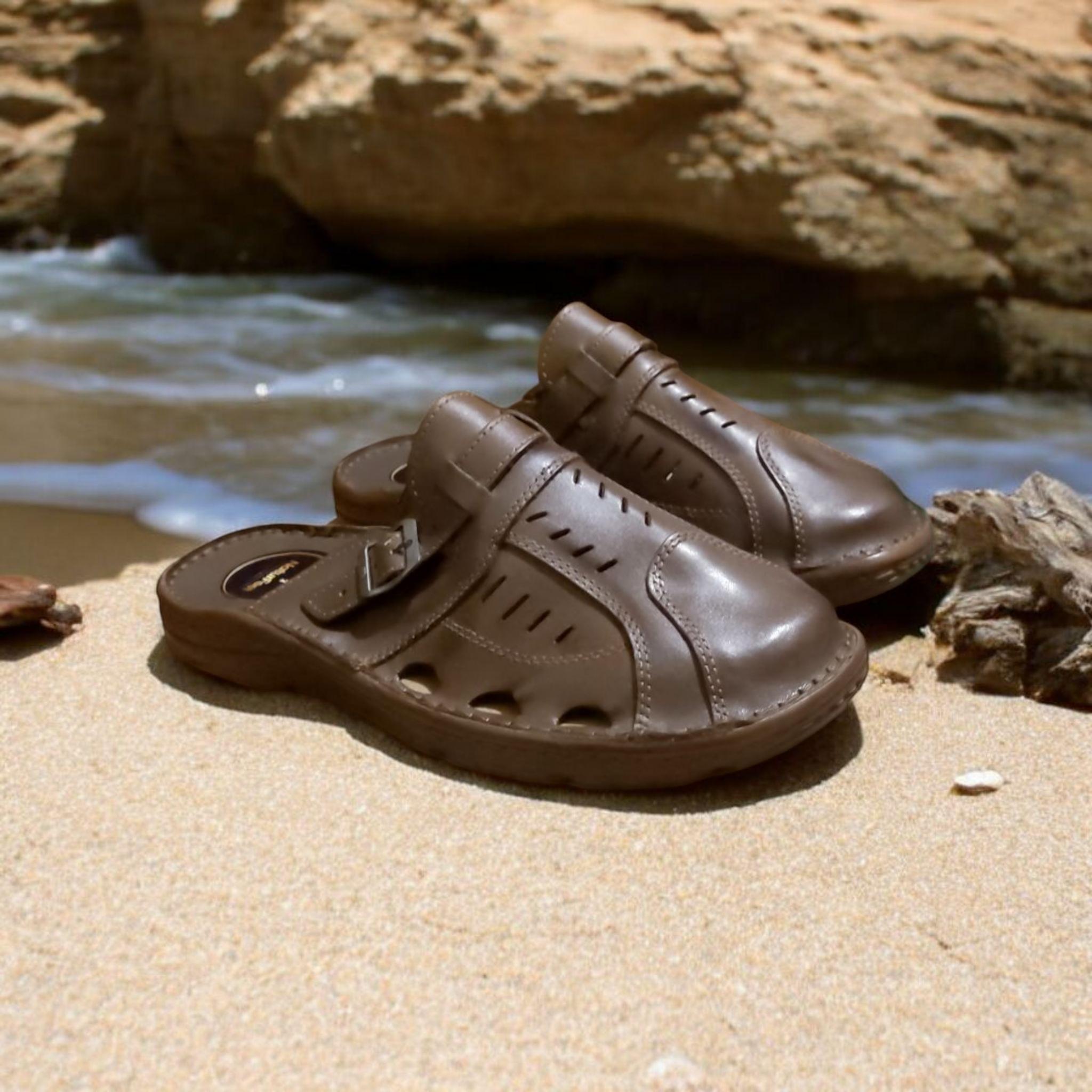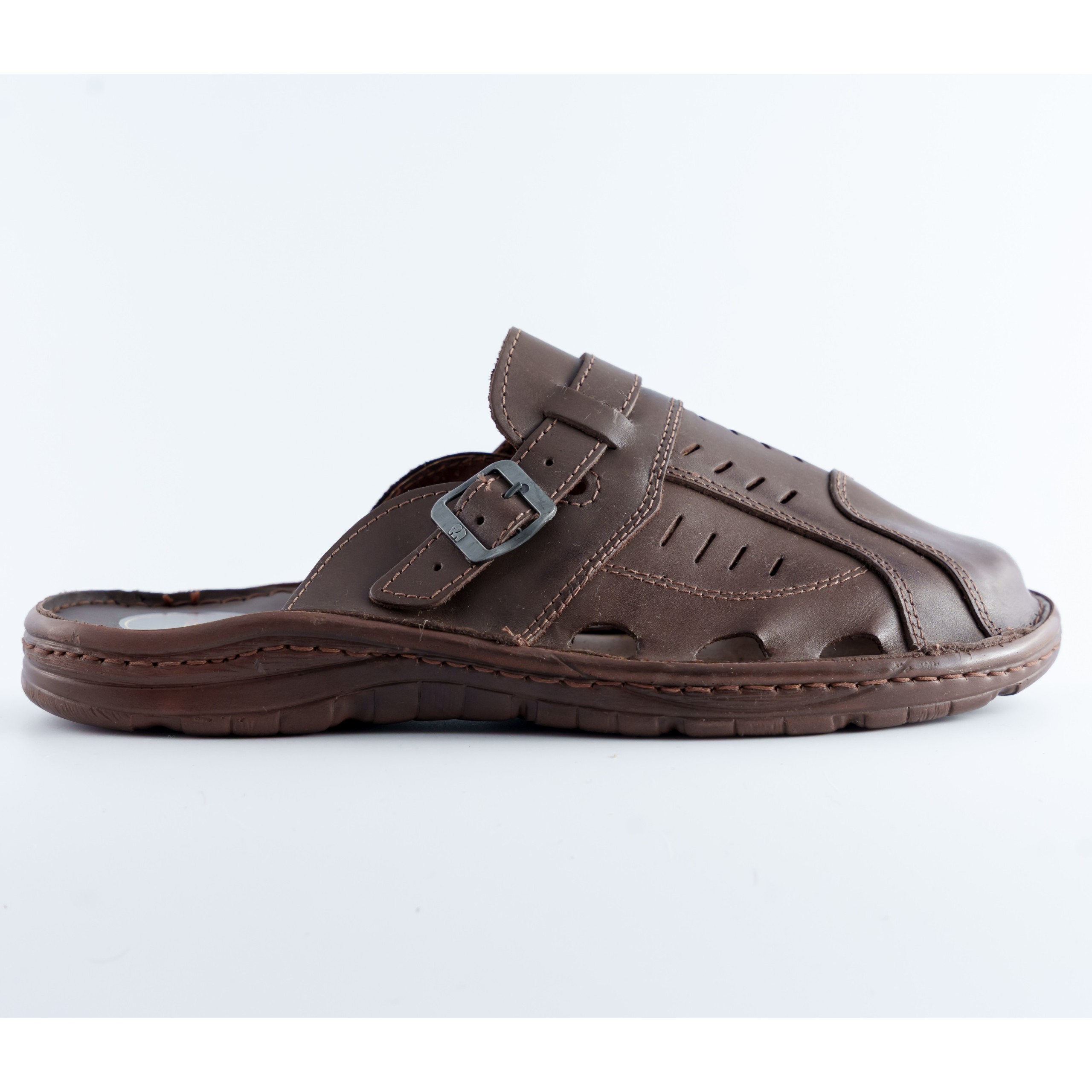 Stylowe i wygodne klapki męskie wykonane z wysokiej jakości skóry naturalnej. Klasyczny, brązowy kolor oraz solidne wykonanie sprawiają, że są idealnym wyborem na codzienne użytkowanie, zarówno w domu, jak i na zewnątrz. Regulowane zapięcie na klamrę pozwala dopasować but do stopy, zapewniając komfort noszenia. Antypoślizgowa, elastyczna podeszwa zapewnia stabilność i bezpieczeństwo na różnych nawierzchniach. Idealne połączenie elegancji i funkcjonalności dla każdego mężczyzny ceniącego wygodę i trwałość.
