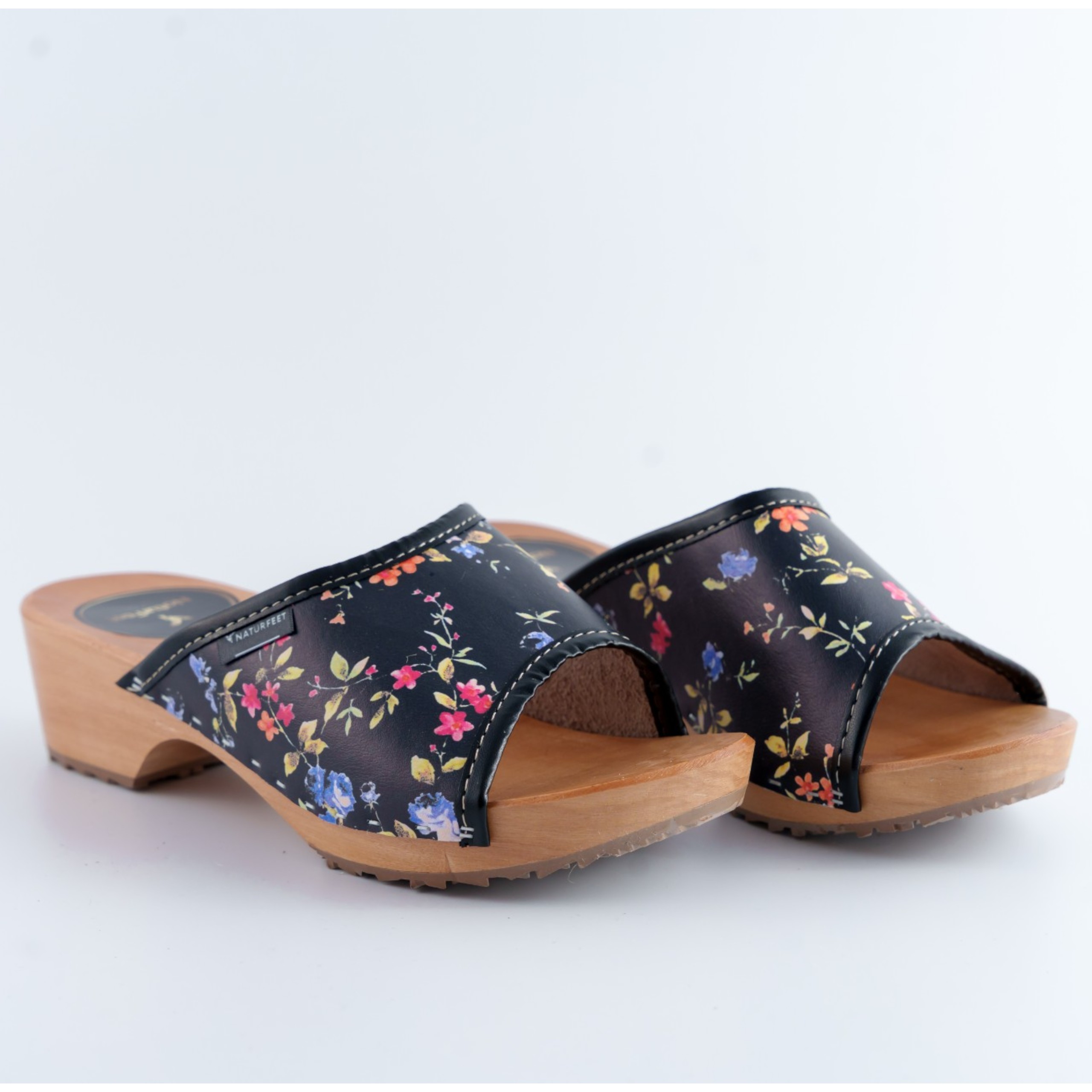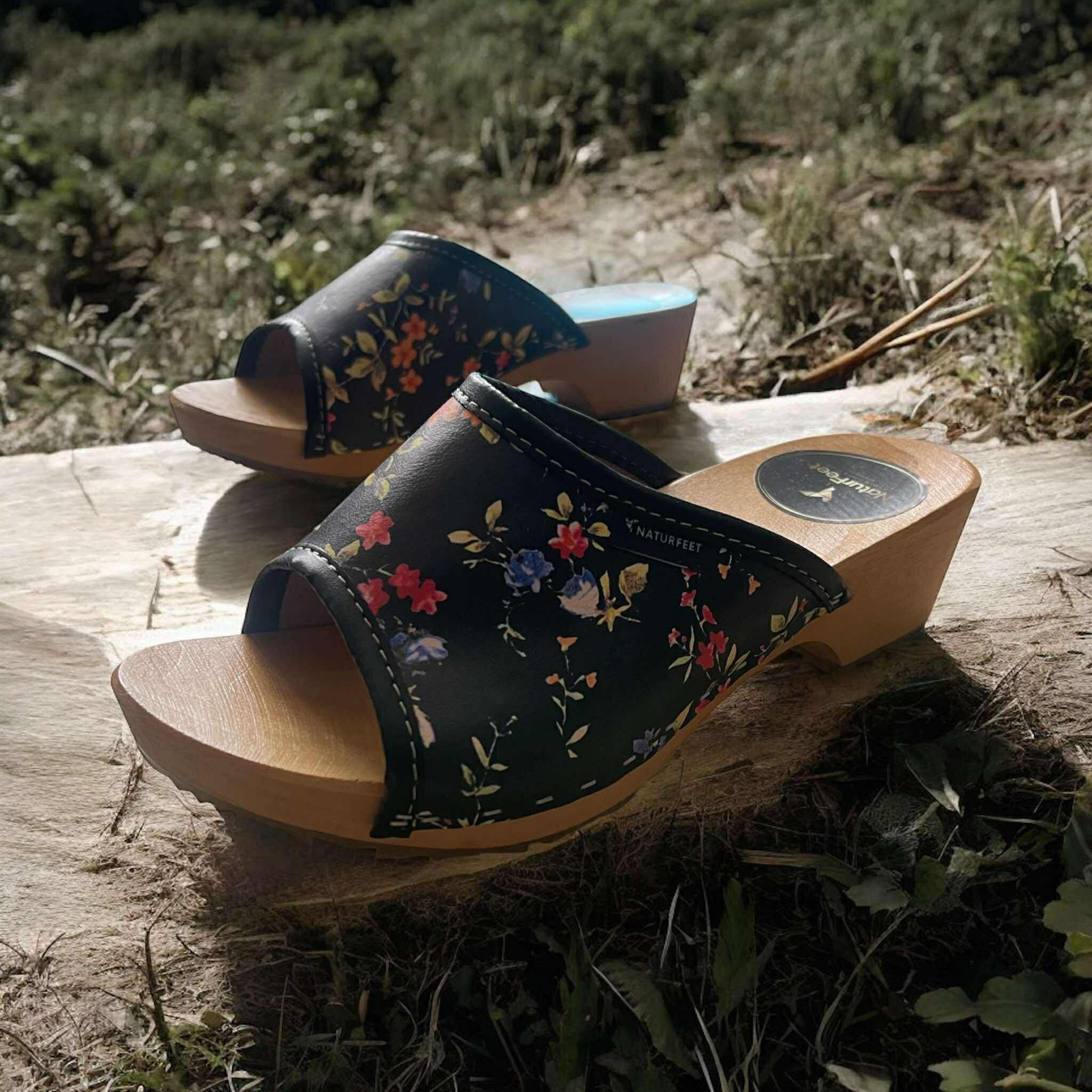 Postaw na styl i wygodę z damskimi drewniakami Naturfeet. Klasyczna forma została odświeżona dzięki kwiatowemu wzorowi na cholewce z naturalnej skóry, co czyni je wyjątkowymi i przyciągającymi wzrok. Naturalna topolowa wkładka zapewnia stabilność, a dzięki ergonomicznej konstrukcji wspiera prawidłowe ułożenie stopy.