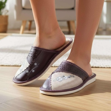 Damskie skórzane kapcie Naturfeet PKC7 – ażurowe, oddychające pantofle domowe z naturalnej skóry