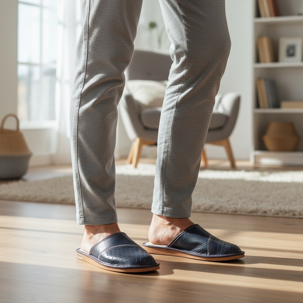 Męskie skórzane klapki VIP Naturfeet PMC6 – wygodne i eleganckie kapcie dla mężczyzn zakryty przód