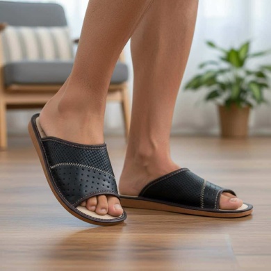 Męskie skórzane klapki VIP Naturfeet PMO6 – wygodne i eleganckie kapcie dla mężczyzn otwarty przód