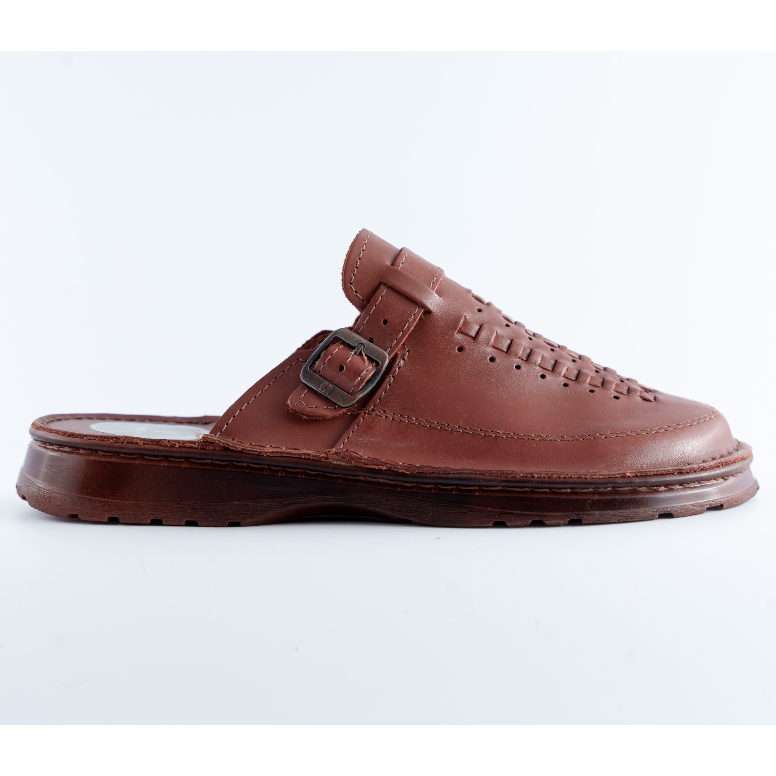 Poznaj klasyczne skórzane klapki męskie, które łączą elegancję z codzienną wygodą. Wykonane z wysokiej jakości skóry naturalnej w eleganckim czarnym kolorze, wyposażone w praktyczne zapięcie na klamrę dla lepszego dopasowania. Perforowana cholewka zapewnia wentylację, idealną na cieplejsze dni, a solidna, gumowa podeszwa gwarantuje trwałość i przyczepność. Doskonałe do noszenia w domu, ogrodzie czy na spacerze. Postaw na komfort i klasykę każdego dnia!